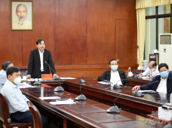 Bộ trưởng Nguyễn Xuân Cường phát biểu trong phiên họp trực tuyến tại điểm cầu Bộ Nông nghiệp &PTNT