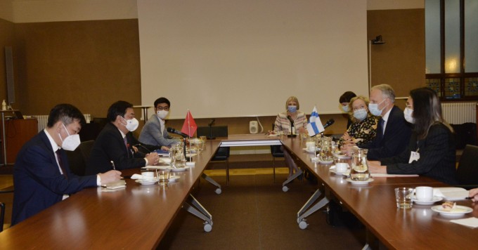 Ngoài ra, Phần Lan cũng rất quan tâm đến dự án thúc đẩy sự phát triển HTX, thúc đẩy thương mại, hợp tác phát triển ngành kinh tế tuần hoàn và kinh tế sinh học. Hai bên cùng có thể chia sẻ kinh nghiệm về những lĩnh vực mà hai bên cùng quan tâm.