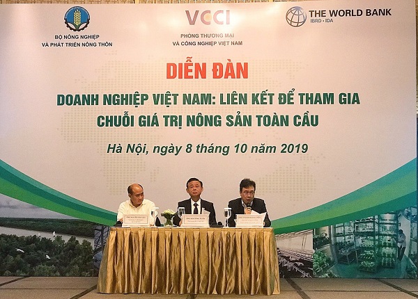 Tăng cường liên kết giữa các doanh nghiệp là giải pháp nâng cao giá trị gia tăng cho chuỗi giá trị nông sản Việt Nam, đồng thời tham gia chuỗi giá trị nông sản toàn cầu. Đó là nhận định của các đại biểu tại diễn đàn "Doanh nghiệp Việt Nam: Liên kết để tham gia chuỗi giá trị nông sản toàn cầu", do Bộ Nông nghiệp &PTNT phối hợp với Phòng Thương mại và Công nghiệp Việt Nam tổ chức, ngày 8/10/2019, tại Hà Nội.