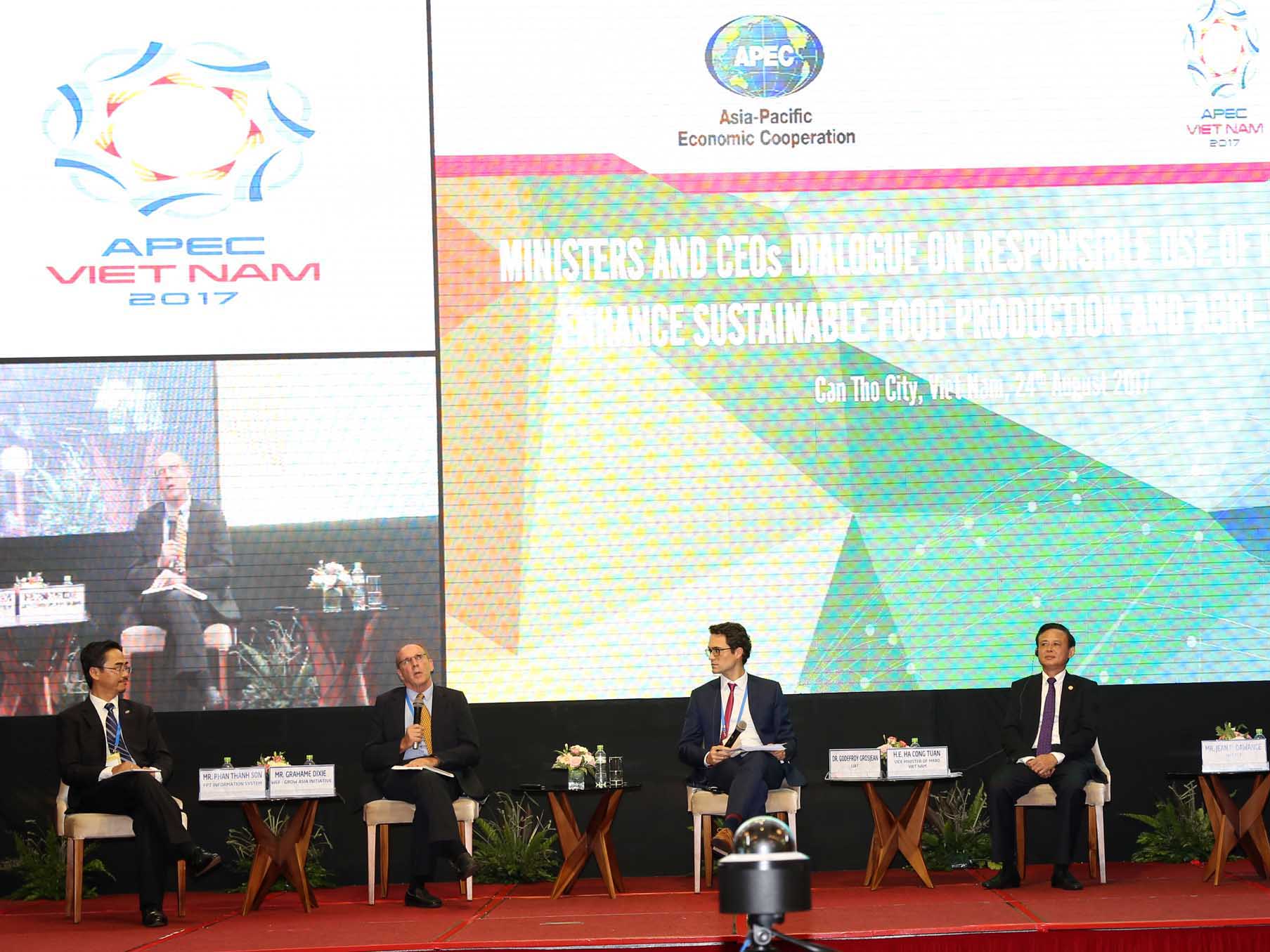 An ninh lương thực và biến đổi khí hậu đã trở thành một trong những chủ đề được quan tâm hàng đầu trong các nền kinh tế APEC do những thách thức ngày càng gia tăng trong chuỗi sản xuất lương thực trên thế giới. Chính vì thế, cuộc đối thoại lần này giữa các Bộ trưởng APEC và các CEO khẳng định nhận thức chung về vai trò quan trọng của cộng đồng doanh nghiệp khu vực cũng như những cam kết chung về việc tăng cường hợp tác hơn nữa giữa các bên liên quan trong nỗ lực ứng phó với những vấn đề chung như an ninh lương thực, tình trạng khan hiếm tài nguyên và tác động của biến đổi khí hậu.