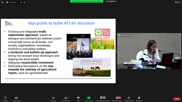 Ảnh: Bà Marion Chaminade, Cố vấn nông nghiệp ĐSQ Pháp chia sẻ kiến nghị tại Hội thảo