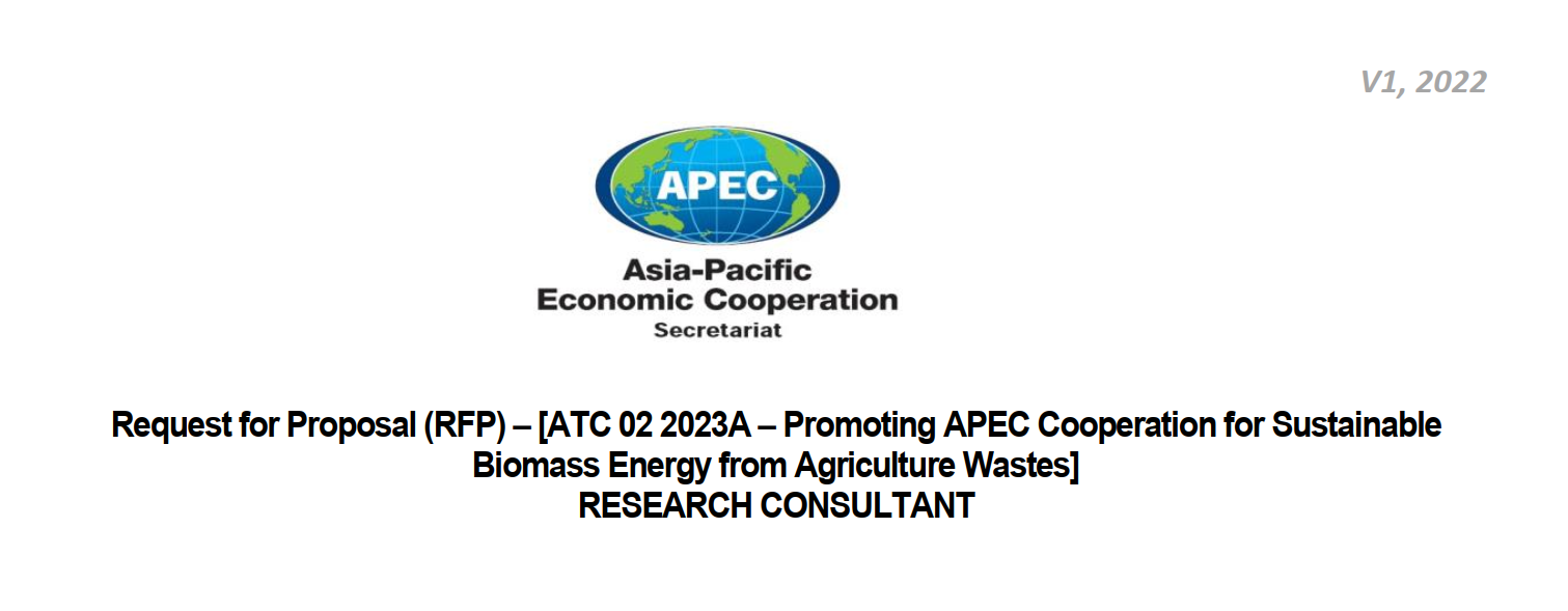 Vụ Hợp tác quốc tế, Bộ Nông nghiệp và Phát triển nông thôn phối hợp với Ban Thư ký APEC đang tìm kiếm các đề xuất cung cấp Dịch vụ tư vấn để hỗ trợ thực hiện ATC 02 2023A – Dự án Thúc đẩy Hợp tác APEC về Năng lượng Sinh khối Bền vững từ Chất thải Nông nghiệp. Vui lòng tham khảo chi tiết trong Yêu cầu Đề xuất (RFP) đính kèm để biết thông tin của bạn. Nếu bạn quan tâm đến việc cung cấp dịch vụ, vui lòng gửi RFP của bạn đến địa chỉ email được chỉ định của chúng tôi không muộn hơn 5 giờ chiều (giờ Việt Nam) ngày 10 tháng 01 năm 2024.