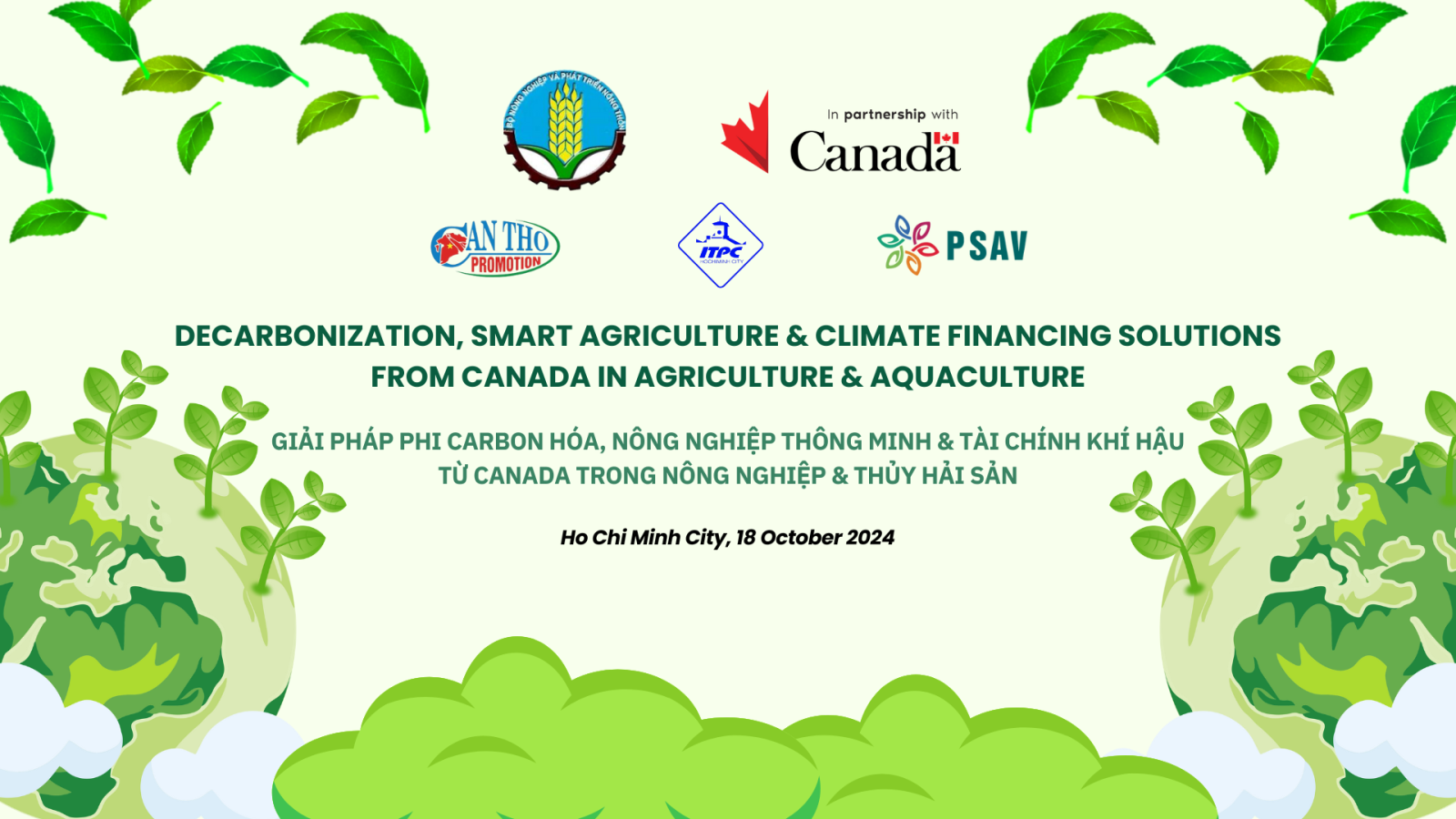 Ngày 18 tháng 10 năm 2024, tại Thành phố Hồ Chí Minh, Tổng Lãnh sự Canada tại Thành phố Hồ Chí Minh phối hợp cùng Bộ Nông nghiệp và Phát triển nông thôn (Ban thư ký Đối tác phát triển nông nghiệp bền vững Việt Nam) sẽ phối hợp tổ chức Hội thảo Giải pháp phi Carbon hóa, Tài chính và Khí hậu thông minh từ Canada trong Nông nghiệp và Thủy hải sản. Sự kiện được mong đợi sẽ thu hút từ 80 đến 100 đại biểu, bao gồm các cơ quan có liên quan của Bộ Nông nghiệp và PTNT; các Bộ/ngành; các doanh nghiệp đầu tư và kinh doanh trong lĩnh vực nông nghiệp, hiệp hội, tổ chức quốc tế và phi chính phủ có liên quan