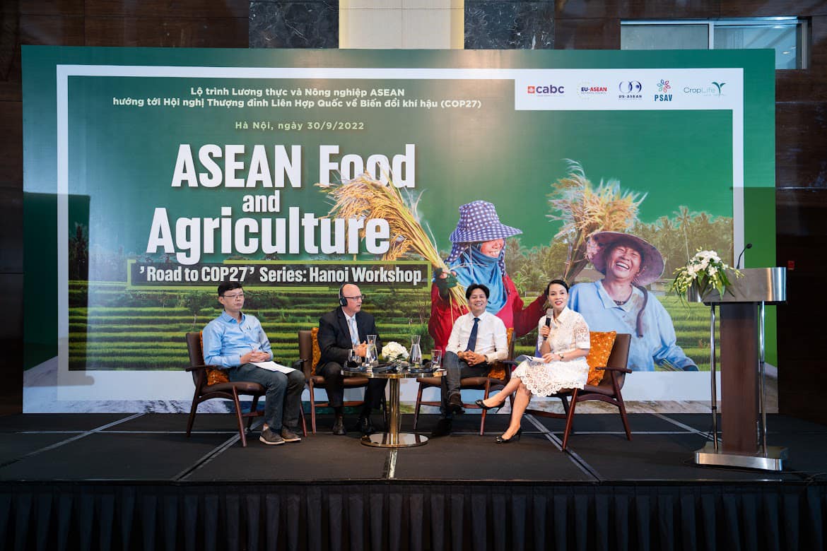 Sáng ngày 30/09, Chuỗi hội thảo về Lộ trình Lương thực và Nông nghiệp ASEAN – Hướng tới COP27 đã được tổ chức tại Hà Nội do Hội đồng Kinh doanh Châu Âu - ASEAN Hội đồng Kinh doanh Hoa Kỳ - ASEAN, Hội đồng Kinh doanh Canada – ASEAN, Đối tác phát triển bền vững nông nghiệp Việt Nam (PSAV) và tổ chức CropLife Châu Á đồng chủ trì. Hội thảo đã vinh dự được đón tiếp gần 50 đại biểu đại diện các cơ quan lập pháp, các chuyên gia trong lĩnh vực lương thực và nông nghiệp, các hiệp hội trong nước và quốc tế cùng các công ty đa quốc gia trong lĩnh vực công nghệ nông nghiệp
