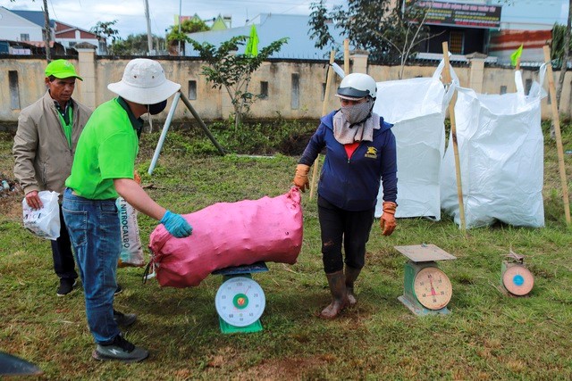 Vẫn mặc nguyên bộ quần áo bảo hộ lao động, bà Nguyễn Thị Ngãi, nông dân xã Tu Tra (huyện Đơn Dương) vội vã đi vào khu thu gom rác thải nông nghiệp của Công ty TNHH Syngenta Việt Nam giao cho cán bộ kỹ thuật mấy bao tải to là các loại rác thải của gia đình trong quá trình sản xuất nông nghiệp. Sau khi cân số lượng rác thải, bà Ngãi vui vẻ nhận những phần quà là dầu ăn, đường, bột nêm...