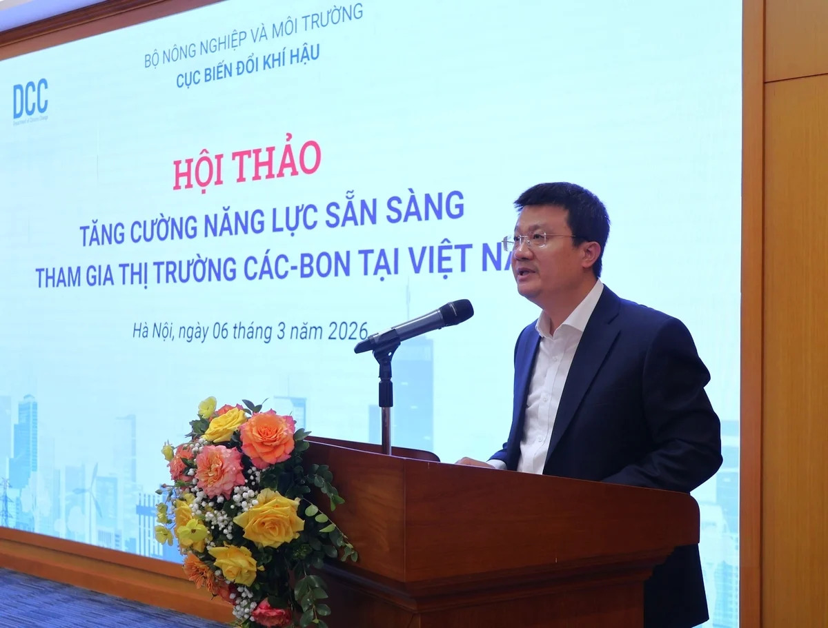 Phát biểu khai mạc hội thảo, ông Nguyễn Tuấn Quang, Phó Cục trưởng Cục Biến đổi khí hậu cho biết: Vừa qua, Chính phủ đã ban hành Nghị định số 29/2026/NĐ-CP ngày 19/01/2026 về Sàn giao dịch carbon trong nước; Thủ tướng Chính phủ đã ban hành Quyết định số 263/QĐ-TTg ngày 9/2/2026 phê duyệt tổng hạn ngạch phát thải khí nhà kính thí điểm cho năm 2025-2026.