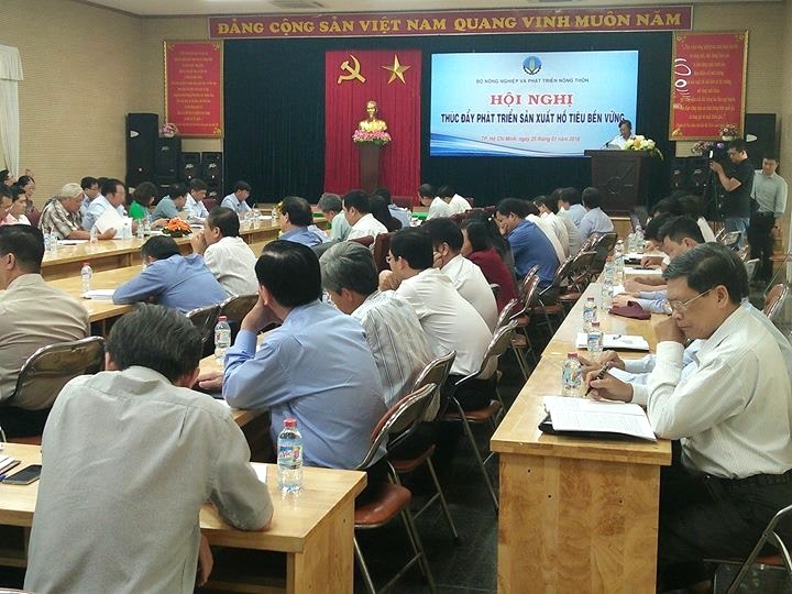 Ngày 25/01/2018 tại thành phố Hồ Chí Minh, Bộ Nông nghiệp và PTNT đã tổ chức Hội nghị Thúc đẩy phát triển sản xuất hồ tiêu bền vững”. Bộ trưởng Nguyễn Xuân Cường chủ trì Hội nghị cùng với sự tham dự của đại diện lãnh đạo Sở Nông nghiệp và PTNT các tỉnh trồng tiêu chủ lực vùng Đông Nam Bộ và Tây Nguyên, Hiệp hội Hồ tiêu Việt Nam, một số đơn vị thuộc Bộ nông nghiệp và doanh nghiệp sản xuất kinh doanh tiêu.