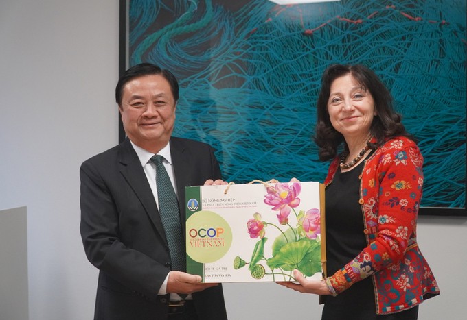 Bộ trưởng Lê Minh Hoan tặng quà OCOP chia sẻ giá trị và niềm tin vào phát triển bền vững